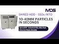 High Speed 3.5"/2.5" Hard Disk & 2.5"/M.2 SSD Drive Shredders Shred hard drives, SSDs well as backup tapes, DVD's, cell phones, laptops and assorted e-waste to 9.5mm (3/8"), 19mm (3/4") or 38mm (1.5") wide particles.